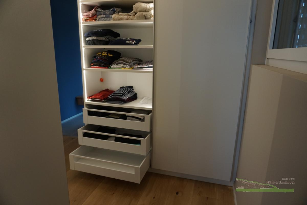 Ein Schrank oder verschiedene arten Möbel schaffen Ordnung. Spielerisch kann man die Schränke oder Möbel optisch in eine Wand verschwinden lassen oder gezielte Form- und Farb-Akzente setzen.